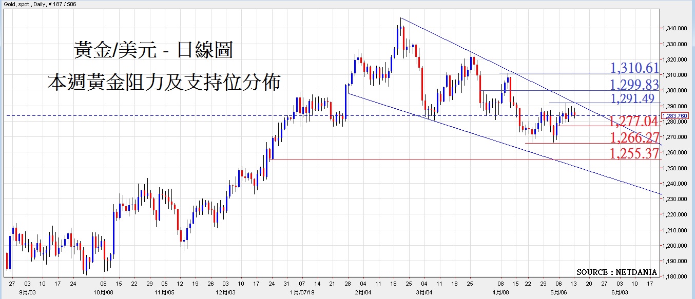 本周黄金阻力及支持位分布: