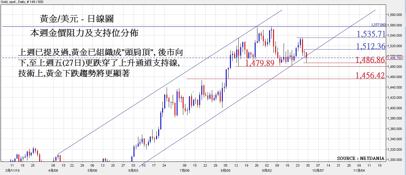 本周黄金阻力及支持位分布 :