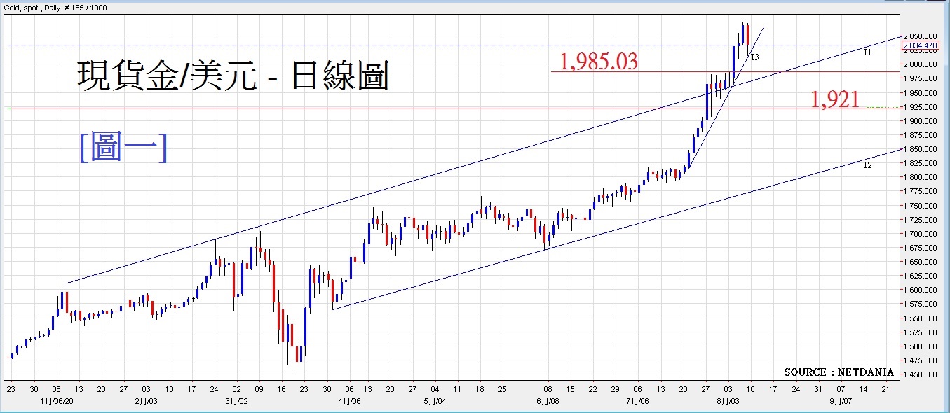 见[图一],预计金价可能下调至1,985, 若再下破的话,预计会下试近1,921,也就是之前维持了9年的纪录高位。