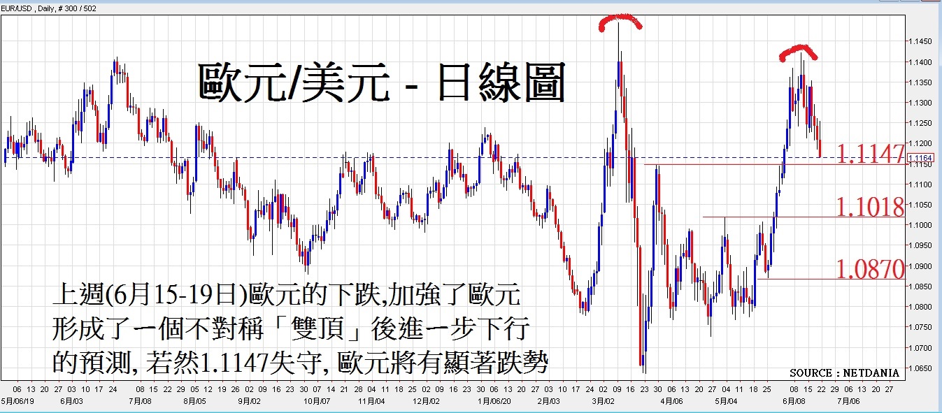 截至6月22日,全球新冠肺炎感染人数累计超过894万(6月初突破800万)。上星期(6月15-19日)多国单日新增个案急升,当中以美国及巴西最为严重,市场忧虑有第二波爆发,有再度「封城」的可能。尤其是全球最大经济体的美国,一旦「封城」,经济将再次停摆,预计资金将流入美元及其他避险资产,本周预计美元汇价及黄金将受惠而上升