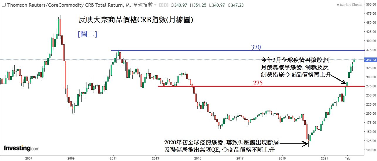 在多国不断开放通关及解禁防疫措施下,令全球疫情再扩散,导致供应及产业链瓶颈问题继续恶化。另外,即使俄、乌停战,但报复性制裁及反制裁将不断扩大,在这形势下,只会令能源及粮食价格持续上升,通胀亦难以回落。