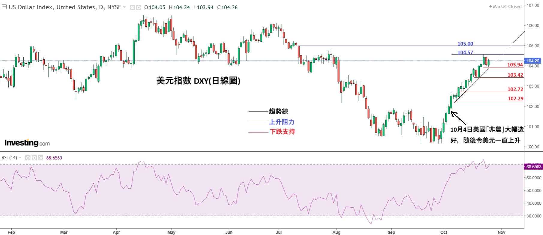 10月4日美国「非农」大幅造好,随后令美元一直上升。