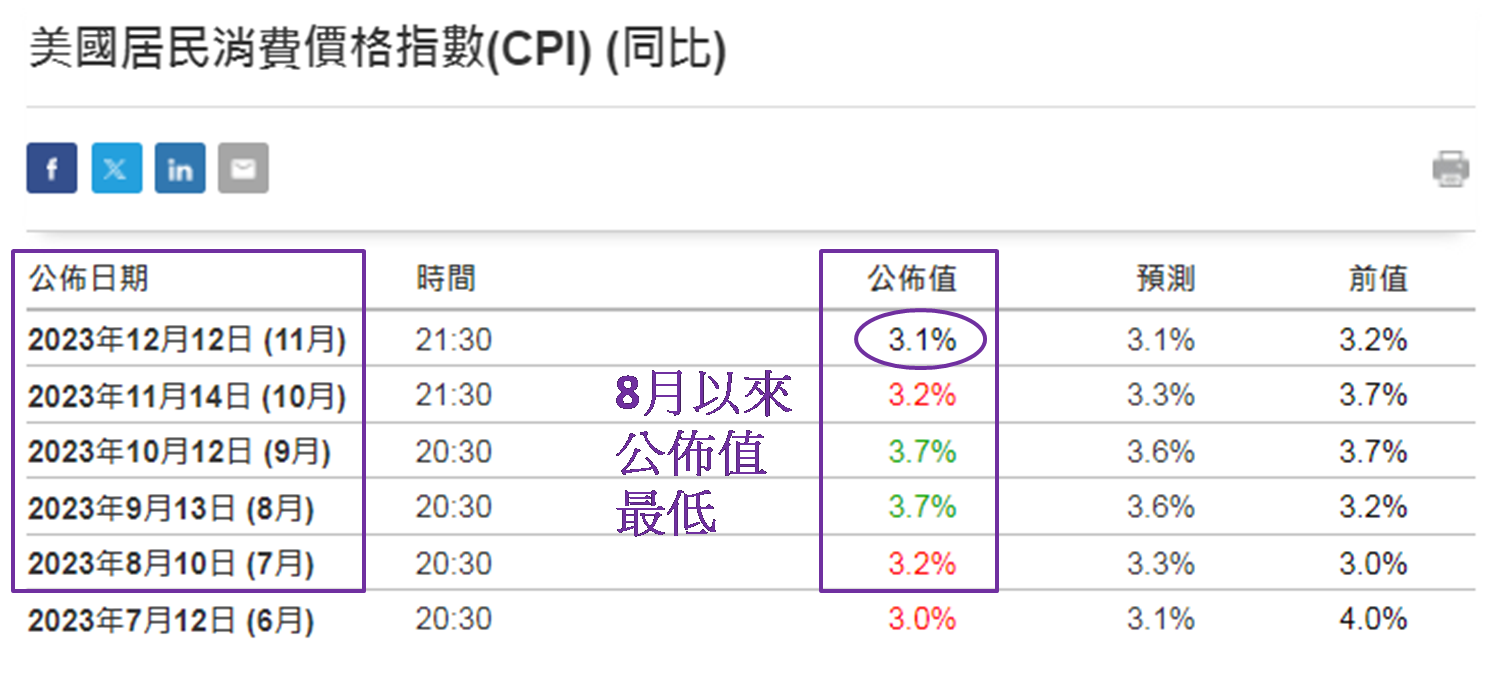 这意味着美股不只是造好,更处于去年11月以来罕见强势,吸引大量资金,尤其是外资流入美股。香港时间今日 (12月14日) 凌晨3:00联储局公布2023年最后一次议息结果,利率期货显示维持利息不变机率达96.9%,加上前日晚上9:30公布11月美国居民消费价格指数 (CPI),较10月下降0.1个百分点至3.1%。为8月以来公布值最低,3.1%亦乎合市场预期,反映美国通胀继续放缓,令联储局有条件继续维持利率不变,甚至可考虑明年在何时进入减息周期;未来两次公布议息结果为香港时间2024年2月1日和3月21日。