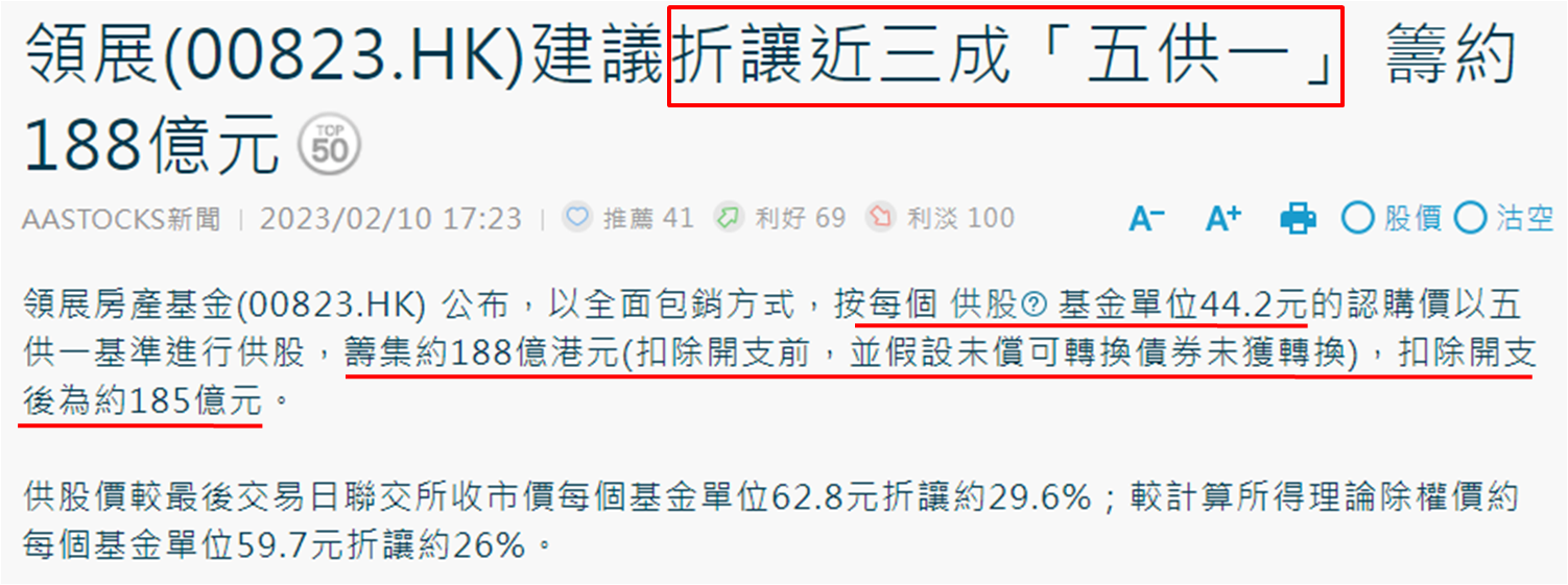 领展宣供股关注重点