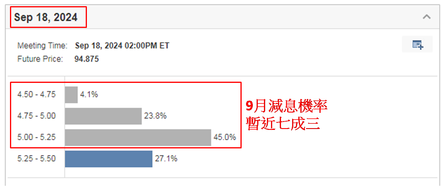 就算考虑到人民币贬值因素,以美元兑人民币在岸价于2023年1月低见6.6910,相对同年9月高见7.3504 (2008年1月以来最高),人民币贬值还不到9.00%,由此推断港股较美股折让逾五成绝不为过。值得反思内地经济较美国经济是否差得股市要折让逾五成才算合理。相信市场的答案明显是「否定」,意味着港股相对美股处于极为吸引的远低于合理水平。事实上,短期利淡美股因素渐增,当中焦点在于美国何时开始减息。上周三美国公布3月消费者物价指数 (CPI),为3.5%,既高于预期的3.4%,亦高于2月的3.2%,以及为去年10月以来最高。