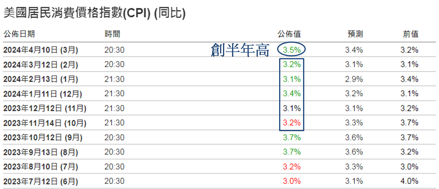 于4月15日发布市评文章时已跟大家简单讲解情况,前文表示数值为3.5%,既高于预期的3.4%,亦高于2月的3.2%,以及为去年10月以来最高。CPI创半年高,一直对美国于6月开始减息的憧憬破灭,现时9月才开始减息的看法为主流。自4月10日起美元明显转强,美汇指数单日升逾1.00,上破105.00,收报105.20,创去年11月14日以来最高收市,反映当时美汇已回到接近五个月强势。更于4月12日进一步上破106.00,现时一直徘徊在此水平。值得留意去年11月高位在107.11,若地缘政治紧张继续升温,市场预期上破107.00仅时间问题。