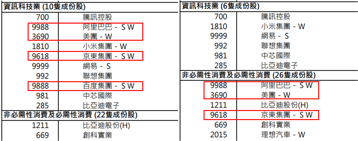 另外,恒指服务公司于上周五收市后公布季检结果,恒指成份股没有变动,维持上个季度的名单,现时数目为82只。但若参考新闻稿的附件,笔者感到有趣,现时成份股归入七大类别,其中「信息科技」于5月17日季检新闻稿显示,有10只股份,不过于上周五新闻稿,显示降至6只,按权重大至小排序被转入其他类别的4股为阿里巴巴─SW (9988)、美团─W (3690)、京东集团─SW (9618) 和百度集团─SW (9888),全被纳入「非必需性消费及必需性消费」类别;而这4股却被市场公认为科技股,如今竟成了消费股!