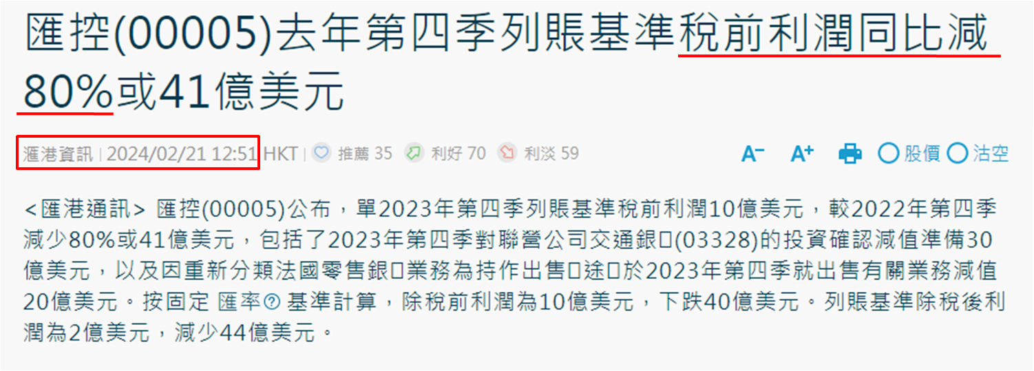 【聂Sir市评】恒指于100天线遇阻力 汇控业绩失望窒碍港股升势 (2024/02/22)