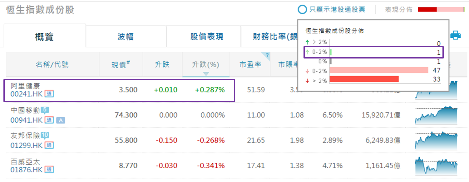 恒指成份股仅一只上扬
