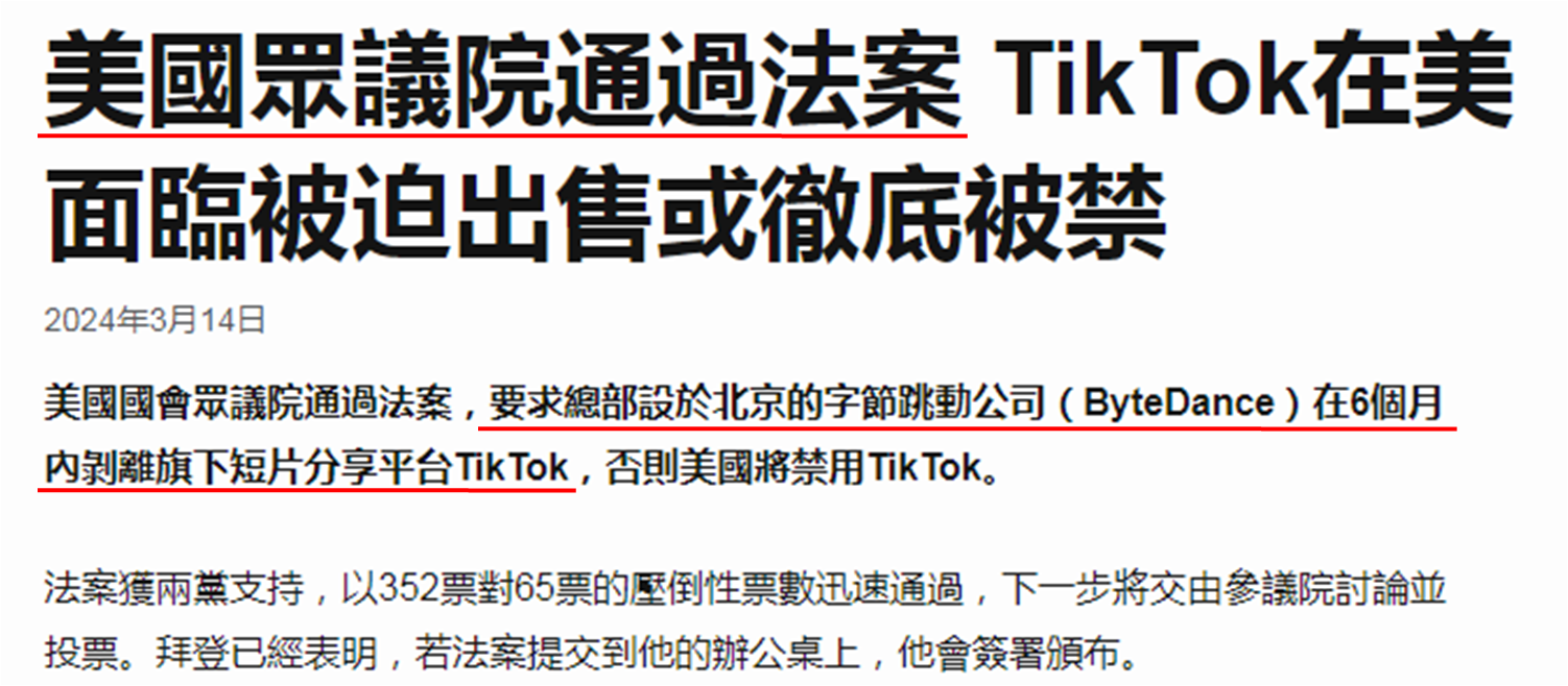相信市场忧虑美国制裁事态会继续发酵,不但在生科界,也有其他产业需要关注,于前文提到的电动车和高端芯片领域之外,美国时间3月13日美国众议院获大比数 (352票对65票) 通过剥离TikTok法案,该分享影片平台的业务,必须其中国母公司字节跳动强制剥离,意味着TikTok要被强制出售。从早前药明生物管理层表示《生物安全法案》不大可能获通过,到最终获批,事隔仅约一个半月,故此市场虽认为剥离TikTok法案在参议院表决时会遇阻力;但笔者对法案能否被否决未感乐观,所以美国制裁阴霾或令本周港股表现进一步受考验。