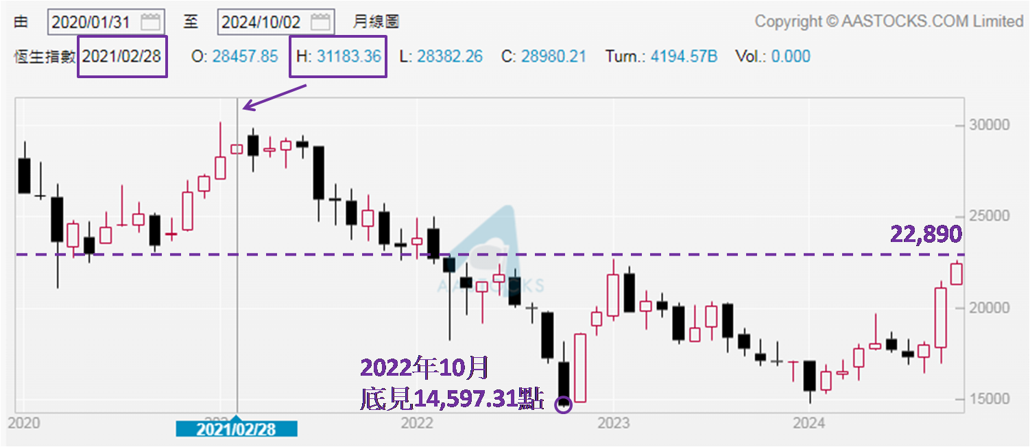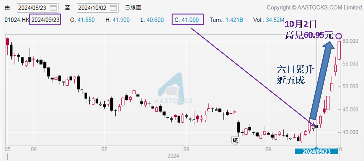 现时A股和港股形势明显大好,大户与散户投资者心情同是仿如「买迟了便蚀底」,于10月2日 (昨日),内地国庆长假期关系A股已两日休市,港股则首日「港股通」关闭,令本来有意流入A股的资金,变相要流入港股,继上周五起上午大市成交金额一直保持在2,000亿港元以上,分别约2,442亿、2,565亿和2,354亿元,「北水」缺席上午交投依然不比周一的显著逊色,实则只是少了不足8.25%而已。恒指表现更见惊喜,上午高见22,640点 (下午高位再刷新),与2023年初高位22,700点经已非常接近,较周一收报21,133点升逾1,500点,从之前三个交易日恒指最大升幅均约800点,跃升至昨日只是一个上午最多便升逾1,500点,升幅多出约八成。