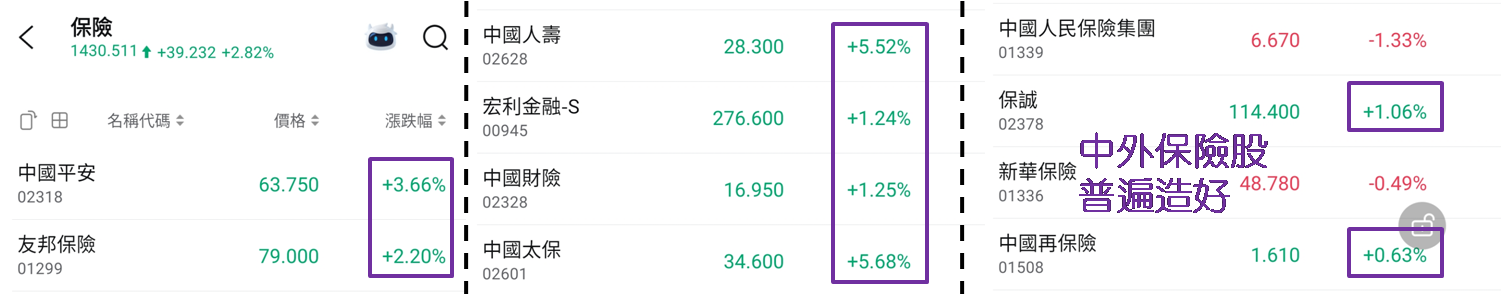 中外保险股均向好
