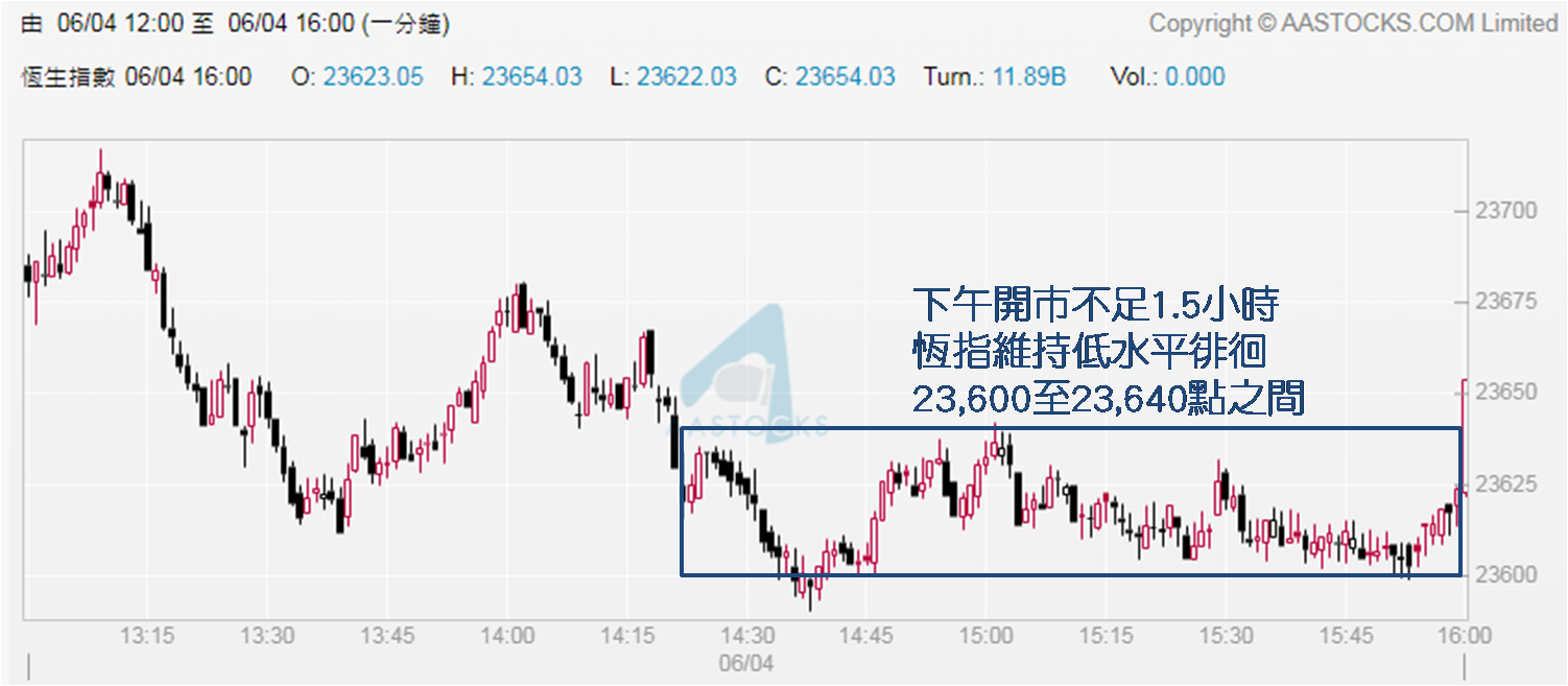 经历了周一 (6月2日) 上午港股走弱后,下午至今一直走强,当日下午恒指高走近380点,周二升逾350点,昨日 (6月4日) 上午再升近170点,上述三个时段的收市位,无不贴近该时段的高位。相比6月2及4日上午分别收于22,778和23,680点,两日累升超过900点。自周二起内地端午节假期完结后,港股交投回复活跃,5月30日至6月4日横跨四个交易日,上午大市成交金额分别约1,189亿、884亿、1,156亿和1,190亿港元。除了6月2日港股通关闭,其余三日有「北水」加持,上午同见成交额近1,200亿元。
