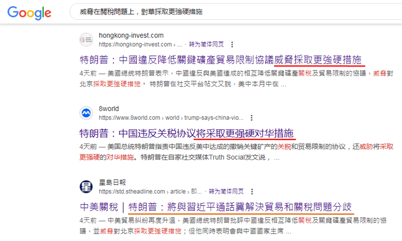 另外,美国总统特朗普对中美发表联合声明后,中国未有复恢对美国进口稀土大感不满,并威胁在关税问题上,对华采取更强硬措施。本周一 (6月2日) 恒指低开近250点后,跌势持续,上午收市前不足半小时,最多跌逾620点,低见22,668点,为5月9日以来最低。下午市场情绪回稳,恒指跌幅大为收窄,最终仅跌约130点,收报23,157点,二万三关口失而复得,认为与市场憧憬中美两国元首在本周电话沟通有关。不过消息来自美国白宫,北京外交部却表示没有相关消息,故不排除这憧憬最终不了了之。