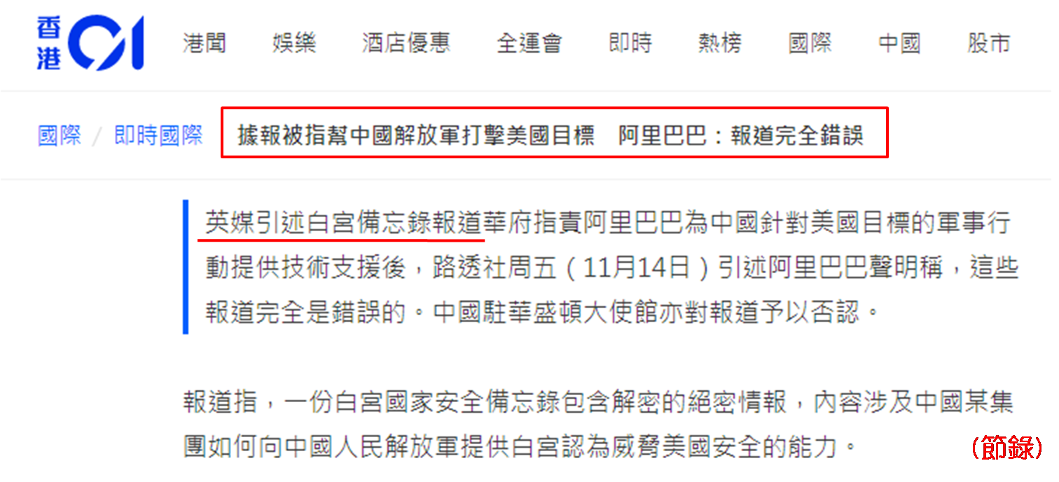 实数是去年9月值以来最低,即创逾一年低。另可留意自2023年11月以来,值于5.0%罕见,今次只是第三次。再度低于5.0%市场解读外需和内需双重疲软导致工业动能放缓。此外,目前恒指最大权重股阿里巴巴─W (9988) 亦见意想不到的利淡消息,英国《金融时报》报道称集团涉军事情报分享。虽消息是否属实有待考证,不过美股阿里巴巴上周五收市价折合约149.40港元,较本港收报154.90元低逾3.50%。倘见港股阿里巴巴今日跌幅相若,预期对恒指超过80点下跌贡献。